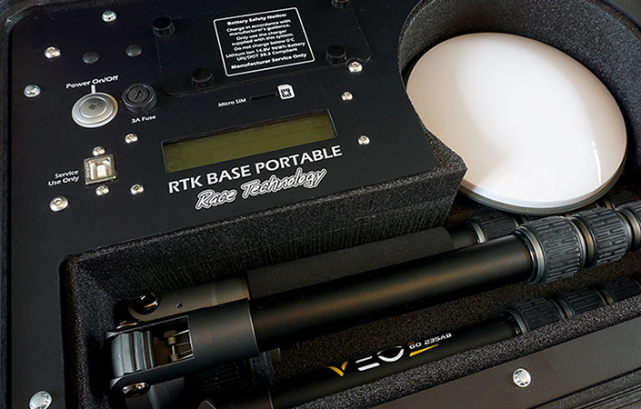 The RTK BASE Portable is a multi-constellation GNSS receiver capable of providing RTCM corrections via either a 4G LTE radio modem or via optional radio modem, to give 2cm absolute positional accuracy for a variety of testing applications. The system is designed to work with any of the Race Technology 2cm capable systems, or with any other GNSS receivers which require RTCM V3.x corrections.