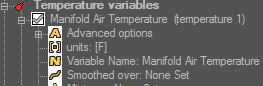 Advanced overlay editor provides a set of special strings to use with simple text controls, when these controls are used as labels to show variable names and unit names. These special strings get replaced automatically with the correct variable names and unit names according to users's variable configuration. Replacements happen when overlays are used with customisation tools, virtual dashboard and Video export.
