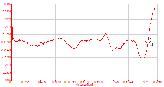 Plot an xy graph, showing longitudinal acceleration. You should be able to clearly see the point at which the vehicle made it's initial pull away from the stat line. (Use the zoom feature to find the precise moment). Put the marker over this point.