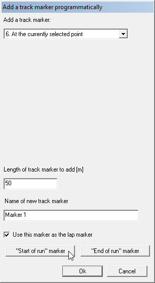 This will open up a window. Define how long you want the marker to be, according to your own preferences, and the click on the "start of run" marker button.