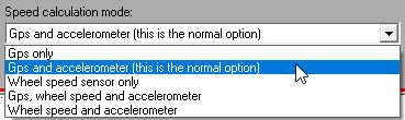 The other options use wheel speed to aid the speed calculations. For most applications this is less accurate than GPS due to problems of the wheels locking up and spinning under load, however in cases where the GPS data is poor using wheel speed is a useful option.