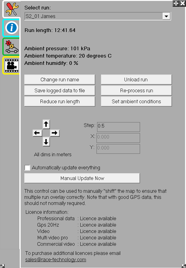 If a run is particularly long with data which is not required at the start or end of the run, it can be shortened to reduce data processing time and file sizes. This is typically the case if you started logging data whilst you were still in the pits before the race. Removing this redundant data saves hard disk space, makes re-processing faster and reduces the memory required of the software.