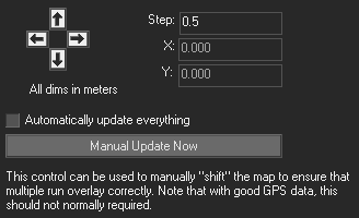 Use the "Step" box to set the increments by which you wish to adjust the track map. A small number in this box will allow you to adjust the track map by very small and precise increments. A higher number will allow you to adjust the map using bigger steps.