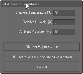 To set the ambient conditions for the run, go to the "Run Manager" and select the "Set ambient conditions" button to enter the details: