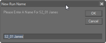 All loaded runs are given a name. This name can be changed to better reflect the contents of the run. To rename a run, select the run you wish to rename, then click "Change the run name" from the Run Manager which will bring up a dialogue box. Type in the new name and click OK to apply the change: