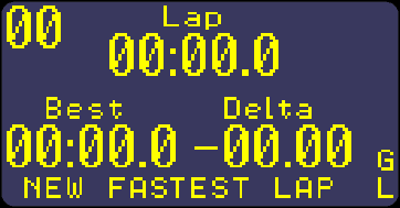 The lap screen that is displayed at the end of every lap is very similar to the sector screen – it displays the time for the last lap, how much faster or slower this was compared with the best lap, and the time of the fastest lap so far. The text NEW FASTEST LAP will show when you set a new fastest lap.