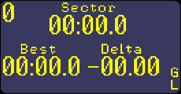 The sector screen that is displayed at the end of each sector is set up to display the sector time that has just been achieved and below this a how much fast or slower this was compared with the best time for that sector. The fastest time for this sector is also shown.