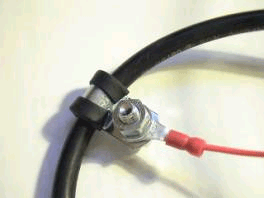 - Attach the P-clip around the HT lead and to the ring terminal on the end of the red lead. Select the size of P-clip which grips the lead without squashing it.