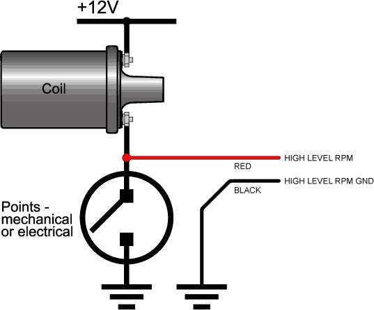 Red Wire - Connects to the "–" terminal on the coil.