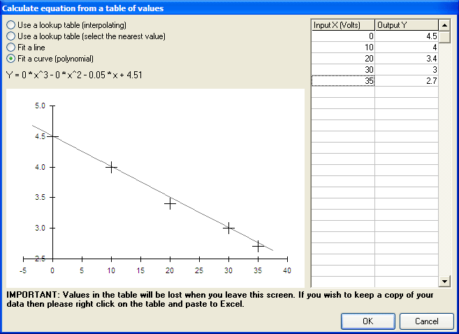 Select the option to enter values from a table and then enter the values for the voltage and fuel level.