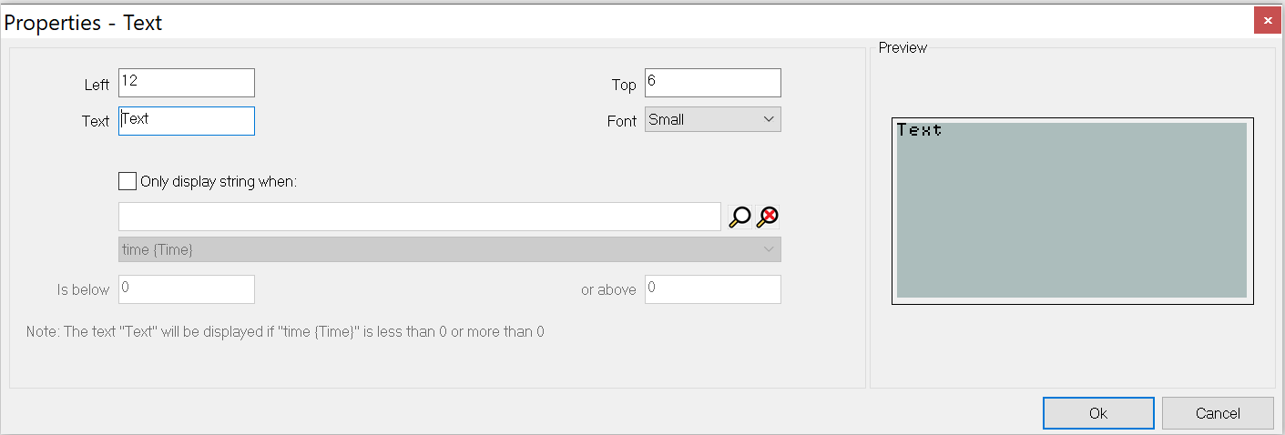 • Only display string when (Show Text based on a value)