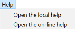 This menu allow you to open the local help file (installed with the software) or to access the online help system.