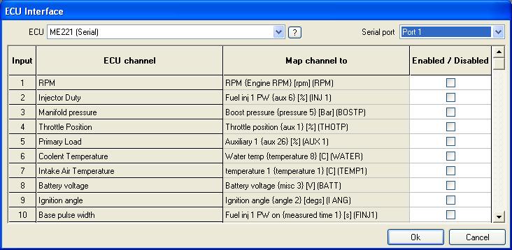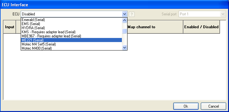 Note – This interface is only available using the built in Serial interfaces on the DASH2 PRO, DL1 Club, PRO and WP. It cannot be used with our ECU serial adaptor.