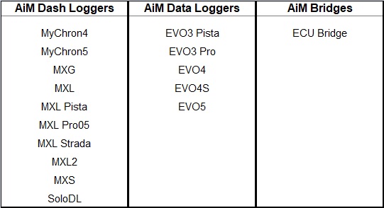 AiM devices should be connected via the Race Technology AiM adaptor cable(s):