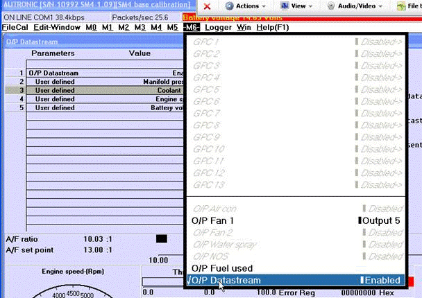 The O/P Datastream must be enabled in the ECU mapping software, as shown below:
