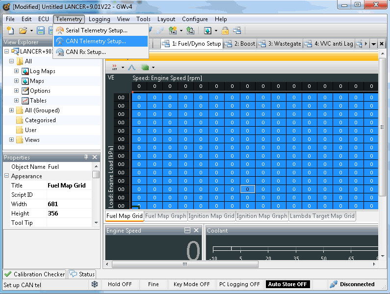 Open the GEMS GWv4 software and select CAN Telemetry Setup...
