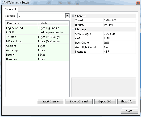 ECU Message Name Race Technology Data Channel Resolution of Data