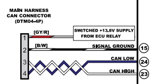 CAN connections are located on the respective universal wiring harness CAN connector: