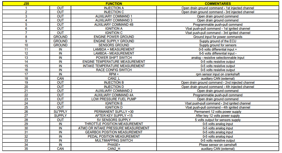 Note - Not all channels listed in the table(s) above may be available from your ECU. This can be dependent on the vehicle model & year of manufacture.