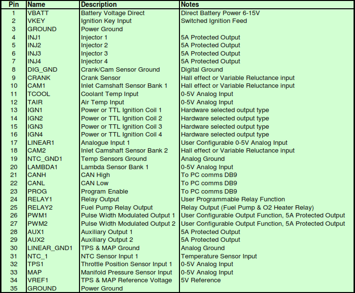Note - Not all channels listed in the table(s) above may be available from your ECU. This can be dependent on the vehicle model & year of manufacture.