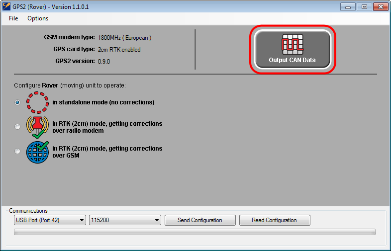 To configure the GPS2 CAN output, click on the “CAN Configuration” button (highlighted in the image below).