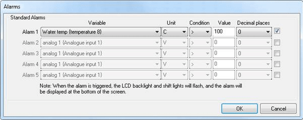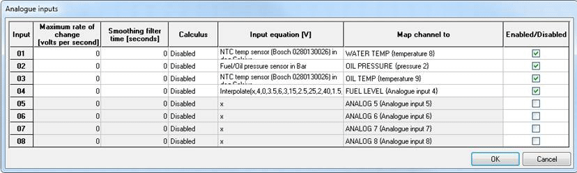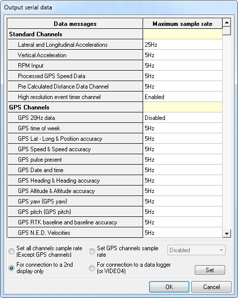 Everything except the data from the four internal analogue channels and RPM is set to come from any serial port.