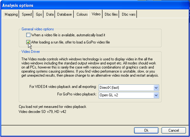 GoPro video can be loaded into the Analysis program either automatically or manually.