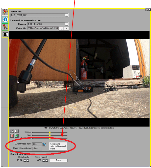 In the Run Manager you can manually set the a corresponding data point and video frame.