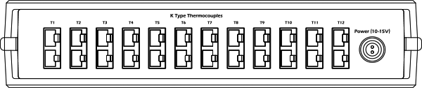 The THERMO12 is a 12 channel thermocouple amplifier and signal conditioner available for K, J, E, and T type thermocouples, the 12 channels of data are sampled at up to 20Hz and the resulting values are transmitted on CAN and/or RS232 output ports.