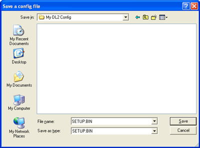N.B If you are using the same memory card that you used earlier to configure the DL1, ensure that the SETUP.BIN file is deleted.