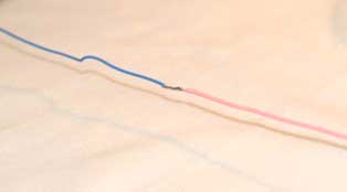 step 3: Now solder them onto the white (ground to common) wire that is on the back of the cable connector. N.B. Before soldering, slide a short section of heat shrink over the wires, so that when the operation is completed, the shrink can be drawn over the join and heated to fit. This will help to strengthen the join.