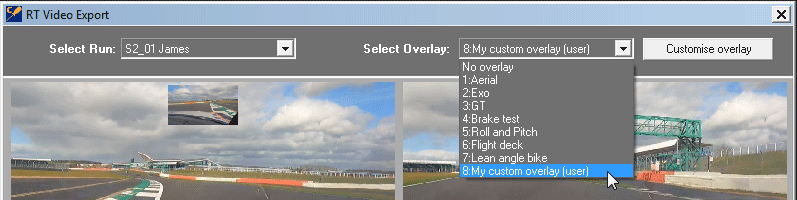 Once you completed both steps, Open Analysis Video export dialog and use the "Select overlay" drop down to select your custom overlay.