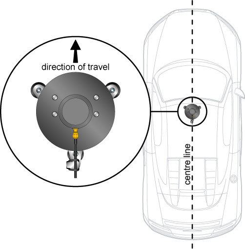 The antenna assembly should then be mounted on the roof of the vehicle in the correct orientation, close to either the front or side of the roof, not in the middle. Further details are shown below.