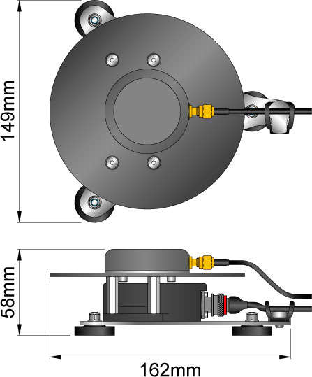 The general dimensions of the Single Antenna Tactical unit are shown above. See below for mounting options and how the unit's layout changes with each installation option.