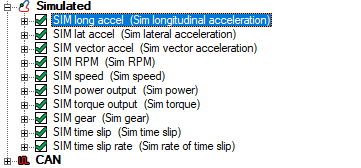 In this case we’ve selected that the simulated longitudinal and lateral accelerations are available, as well as simulated speed and time slip rate. Note that the simulation mode uses the calculated corner radius in the software: