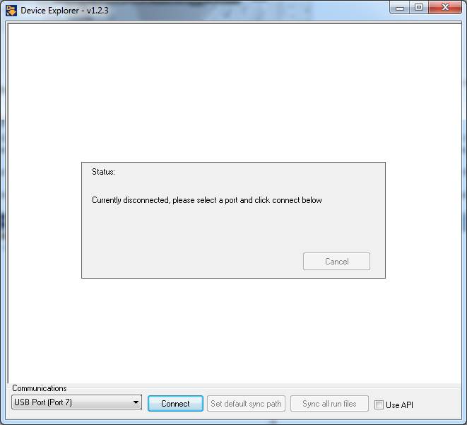 Note: If you want to connect using the Windows API instead of FTDI drivers, select "Use API" check box.