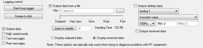 - Setting the slider to the “Real” position will output the data in the same speed as it get recorded to the file.