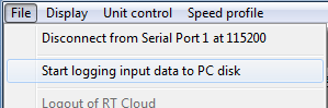 2. To start streaming, Click the menu item File -> Start logging input data to PC disk