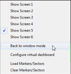 You can open/close the data screens in separate windows by using sub menu commands of the "Display -> Show Virtual Dashboard" menu.