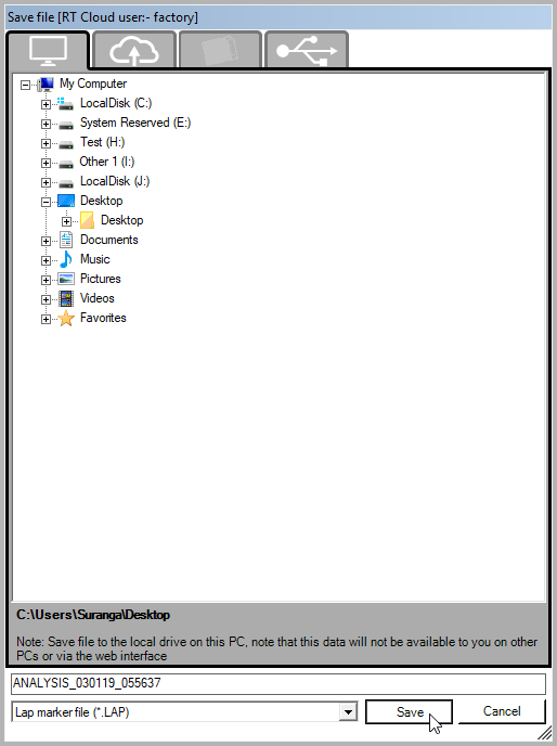 After selecting a directory and entering a file name, click on the "Save" button to save the current markers and sectors to the selected directory.