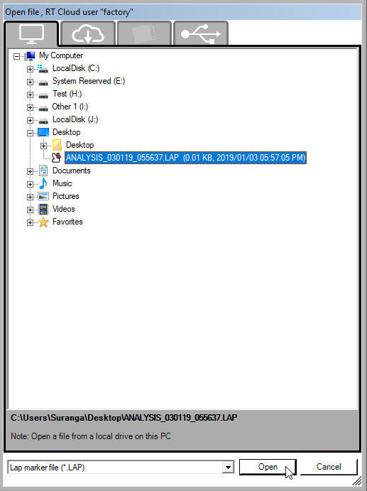 Select the .LAP file you wish to load and then click on "Open" to load the markers and the sectors on to your loaded circuit.