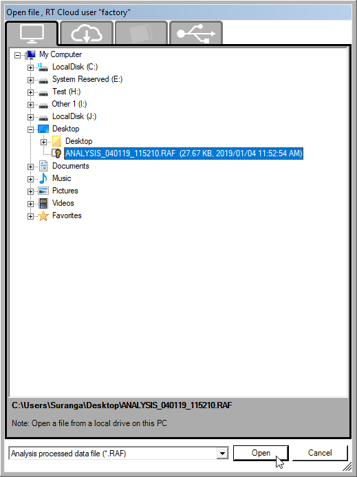 Select the file you want to load by left clicking on the file and click on "Open" to load that session.
