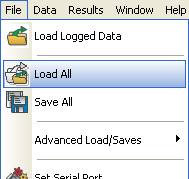 To load or save a processed set of data, go to > File > Load All and > File > Save All respectively: