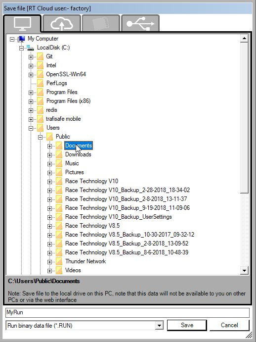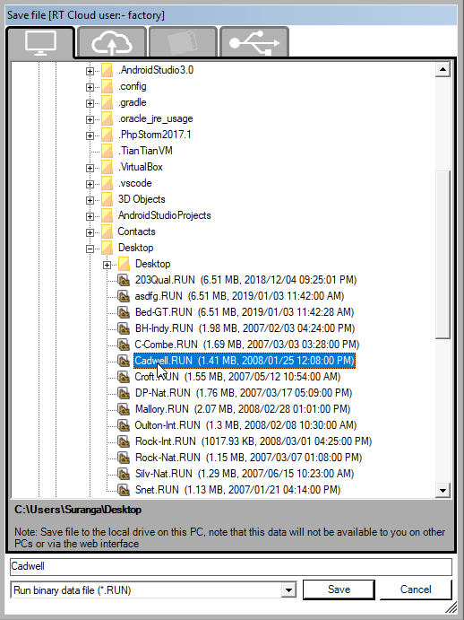 You can also overwrite an existing RUN file by browsing to the file, left clicking on it and clicking on save.