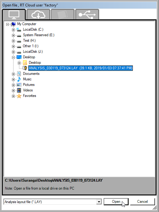 Select the file you wish to load and click "Open" to load that screen layout to the analysis program.