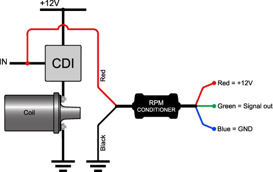The RPM conditioner is an adapter box to convert a “high level” RPM source, typically from an ignition coil, to a low level conditioned logic level output which can be connected to any of our data loggers and dashboard products.