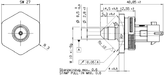 This brake pressure sensor is specifically designed for measuring the high pressures in automotive braking systems. It is extremely robust and resistant to brake fluids, mineral oils, water and air.