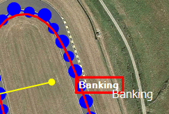 To add a feature to the track right click on the track to open it's context menu and click on the "Add corner here" menu item. (You can click on a large point, small point, or on the red line).