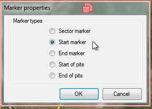4. The marker properties window will be little bit different depending on the state of the "Open circuit" and "Define pit line" options: