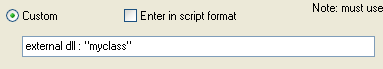 To reference an external DLL is very simple, within the variables manager - go to the units or edit equation and click the Custom option. In the description enter the name of the DLL as follows: